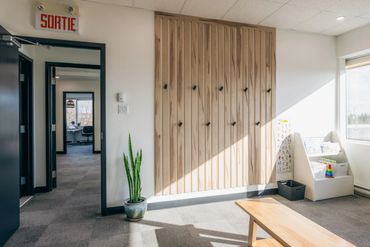 Vous avez également accès à un petit casier barré dans le but d’y laisser des objets personnels (seulement pour les locataires ayant signé un bail d’un an), vous aurez un endroit pour laisser votre manteau et souliers à part des clients. Notre espace dispose d'une salle d’attente pour accueillir chaleureusement les clients.